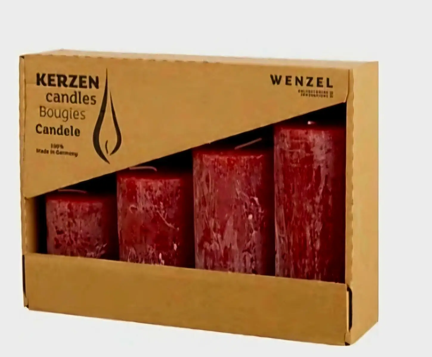 Unsere Wenzel Kerzen stehen für erstklassige Qualität aus Deutschland. Jede Kerze besticht durch ihre charakteristische gekratzte, rustikaler Oberfläche. Diese besondere Textur verleiht den Kerzen einen lebendigen, handwerklichen Look, der perfekt zu modernen sowie klassischen Einrichtungsstilen passt.